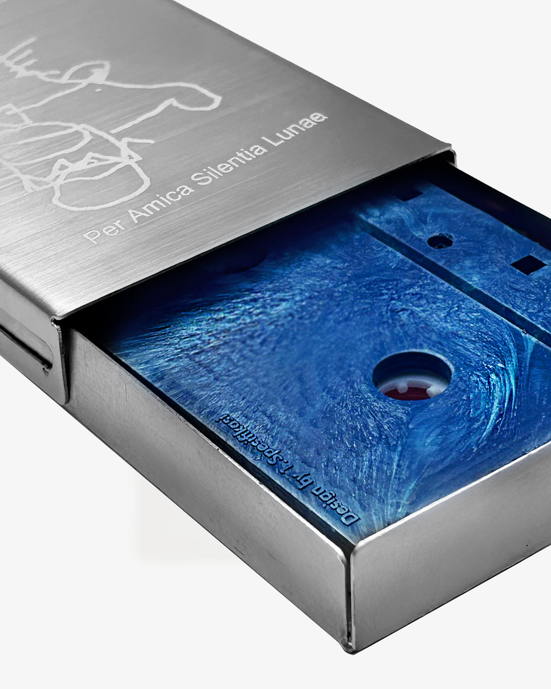 Enter a world of limitless musical exploration with Capablanca's sound collage. Let go of all expectations as time and space blur, genres disappear, and inter-dimensional dubs take over. The Full Moon has brought forth a unique journey, encased in a revived HDPE plastic shell. Vibrant blue and orange hues beckon you to join Capablanca and Peels in their experimental creation, housed in a custom stainless steel sleeve.